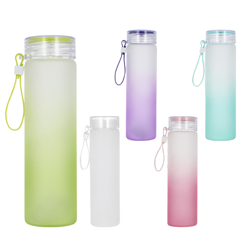 Botella de vidrio para agua con tapa tipo rosca y correa de silicón.