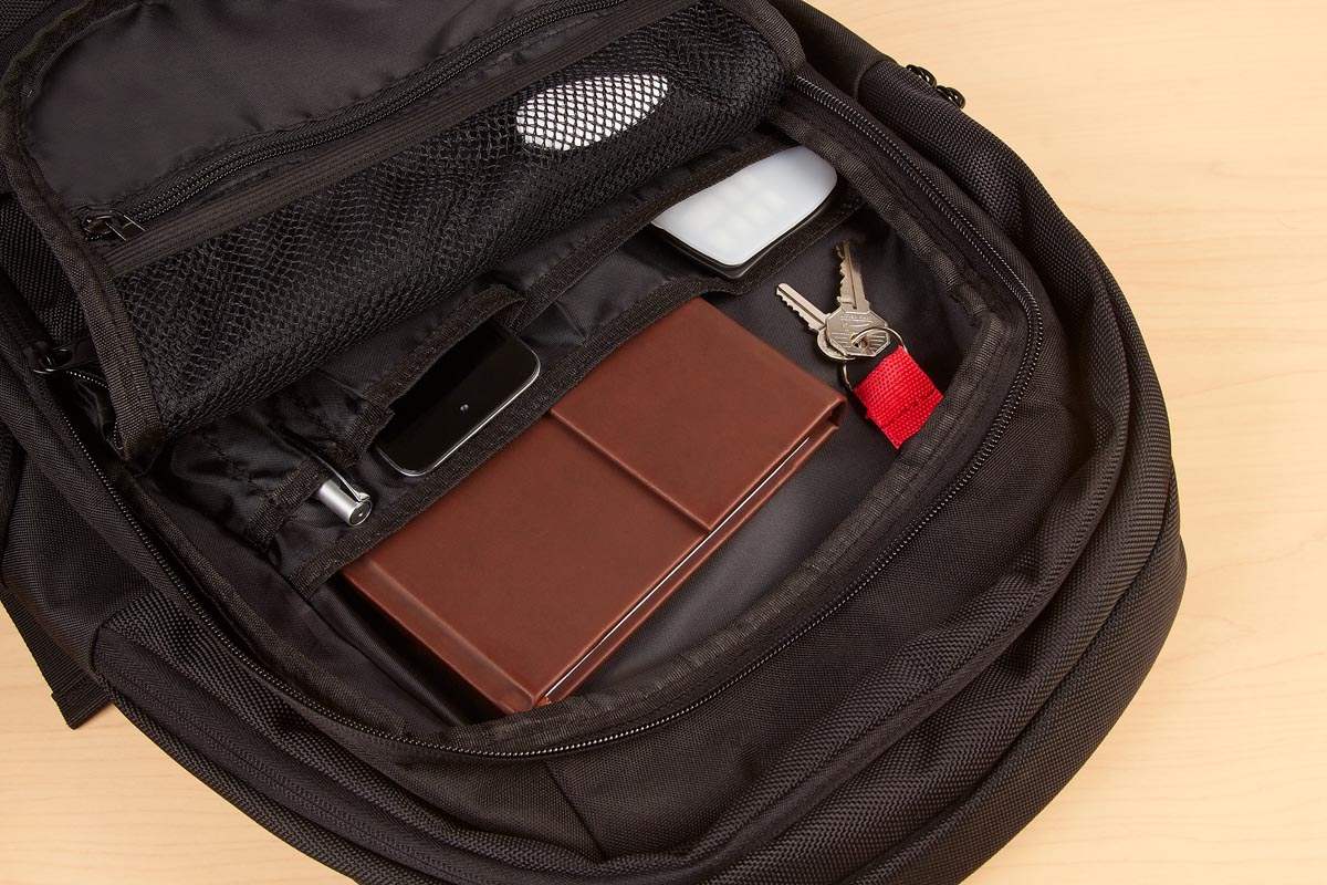 MOCHILA METROPOLITAN(Bolsa principal con espacio para laptop. Bolsa central para tablet. Bolsa frontal con compartimentos para celular, bolígrafos y documentos. Bolsas laterales con cierre. Respaldo con cierre y porta celular interno. Respaldo y tirantes