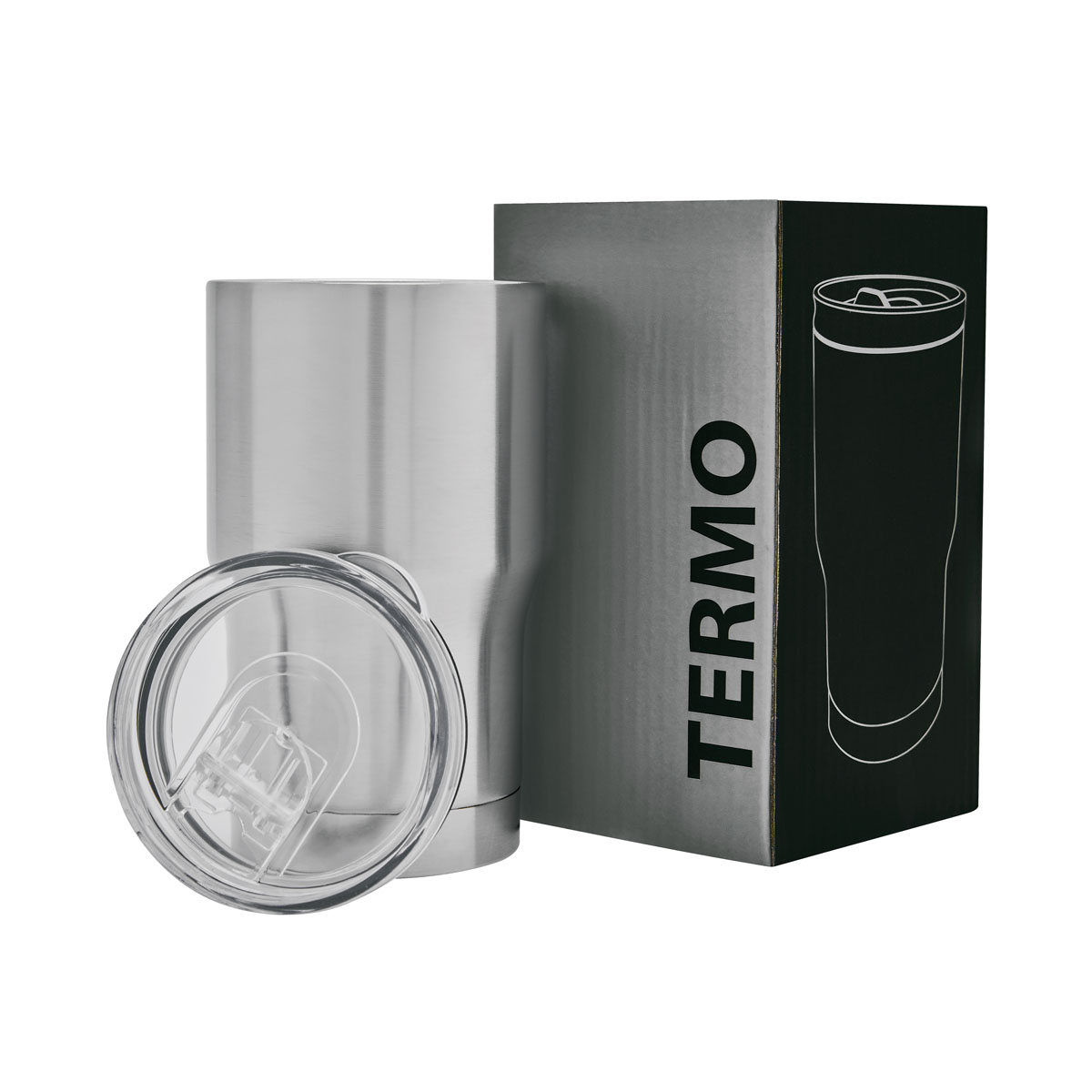 TERMO ANGRA(Doble pared. Cerrado al vacío. Pared interna y externa acero inoxidable. Incluye tapa de plástico con válvula de seguridad. Base metálica en color plata. Mantiene temperatura caliente 6 hrs y temperatura fría 8 hrs aproximadamente. Incluye caj