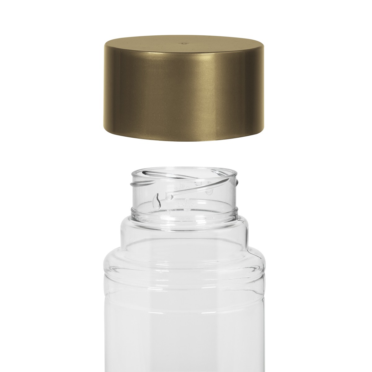 Tapa de color metalizado. Sistema de rosca twist-off que permite abrir y cerrar la tapa en un giro. Mantener el linner en el interior de la tapa en todo momento, se debe retirar hasta su uso final. Revisar que la tapa no esté cerrada completamente. No exp