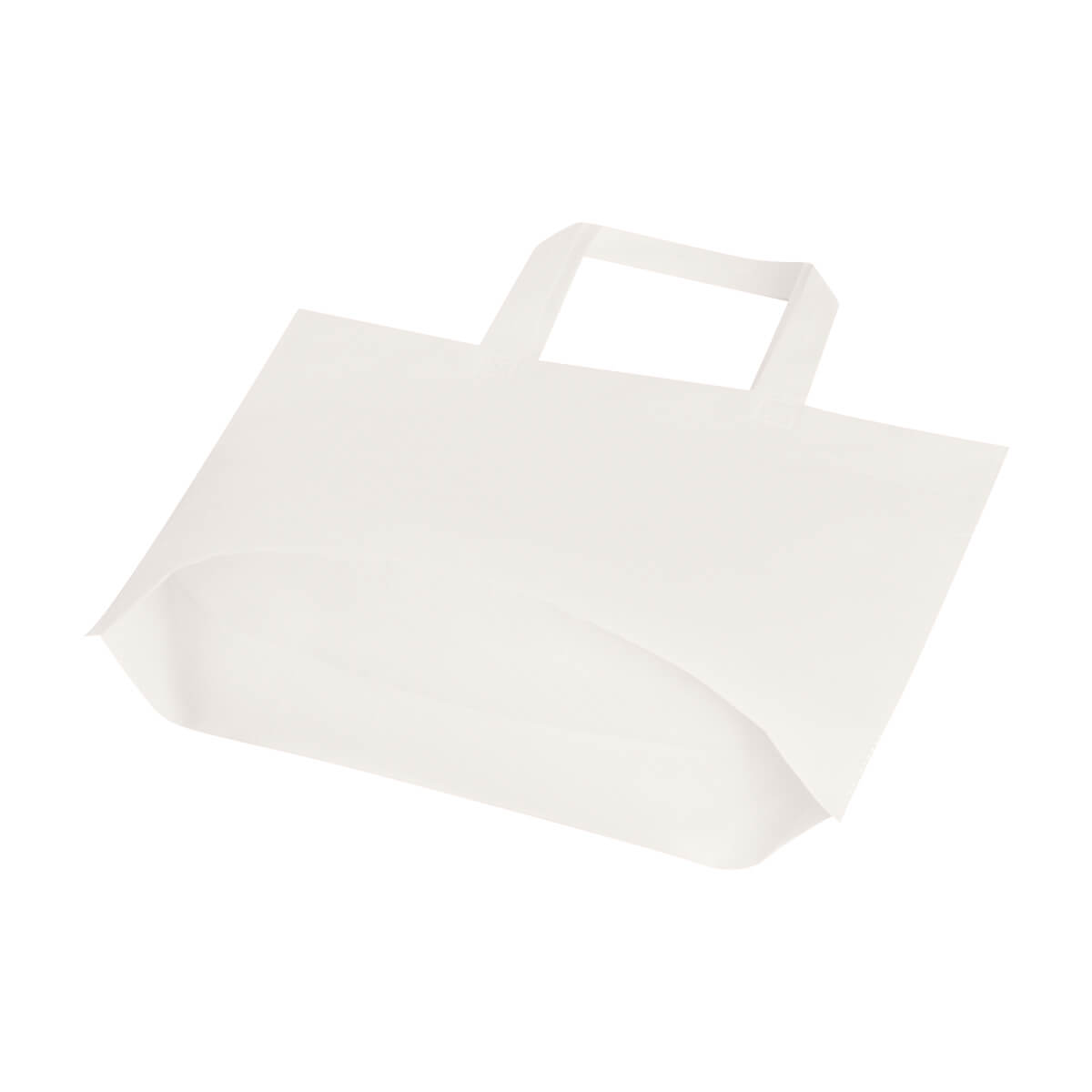 Bolsa con fuelle. Sellada a calor. Su asa integrada ofrece un agarre cómodo y seguro. Material ligero y resistente, ideal para llevar tus compras y más. Una gran opción para cuidar el medio ambiente.