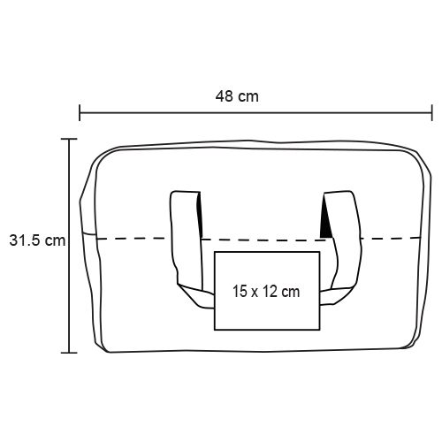 Maleta deportiva con bolsa plástica interior con cierre; dos asas superiores reforzadas con velcro y correa ajustable.