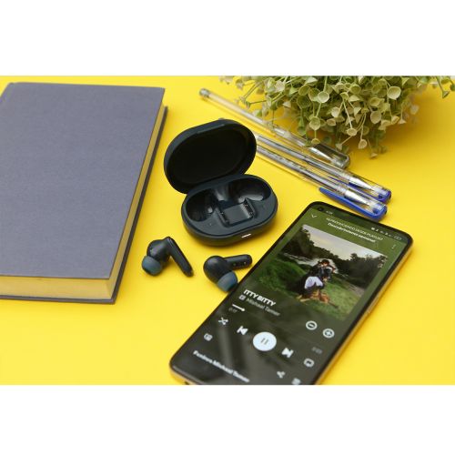 Medidas: Estuche: 6.3x4.7x2.7 cm. | Audífonos: 3.2x2.3x0.9 cm. Área Impresión: Estuche: 3.2x2.8 cm.