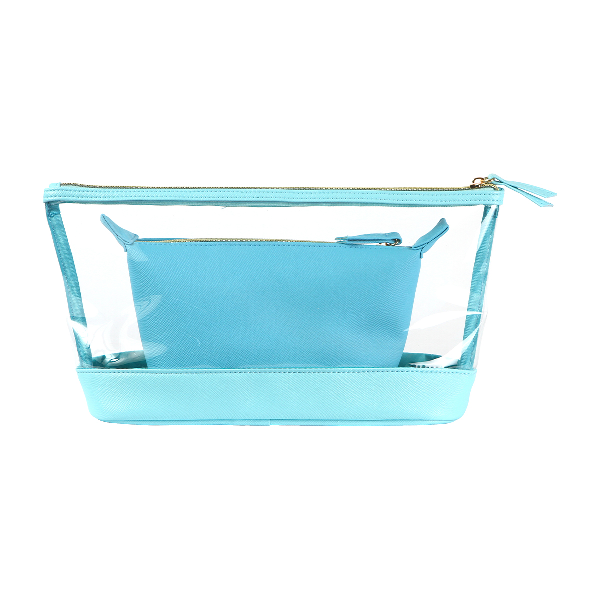 Organiza tus esenciales de belleza y cuidado personal con este práctico juego de dos cosmetiqueras, ideal para viajes o uso diario. Incluye una cosmetiquera grande fabricada en plástico PVC transparente, perfecta para visualizar y acceder rápidamente a su contenido, con cierre seguro y diseño resistente.