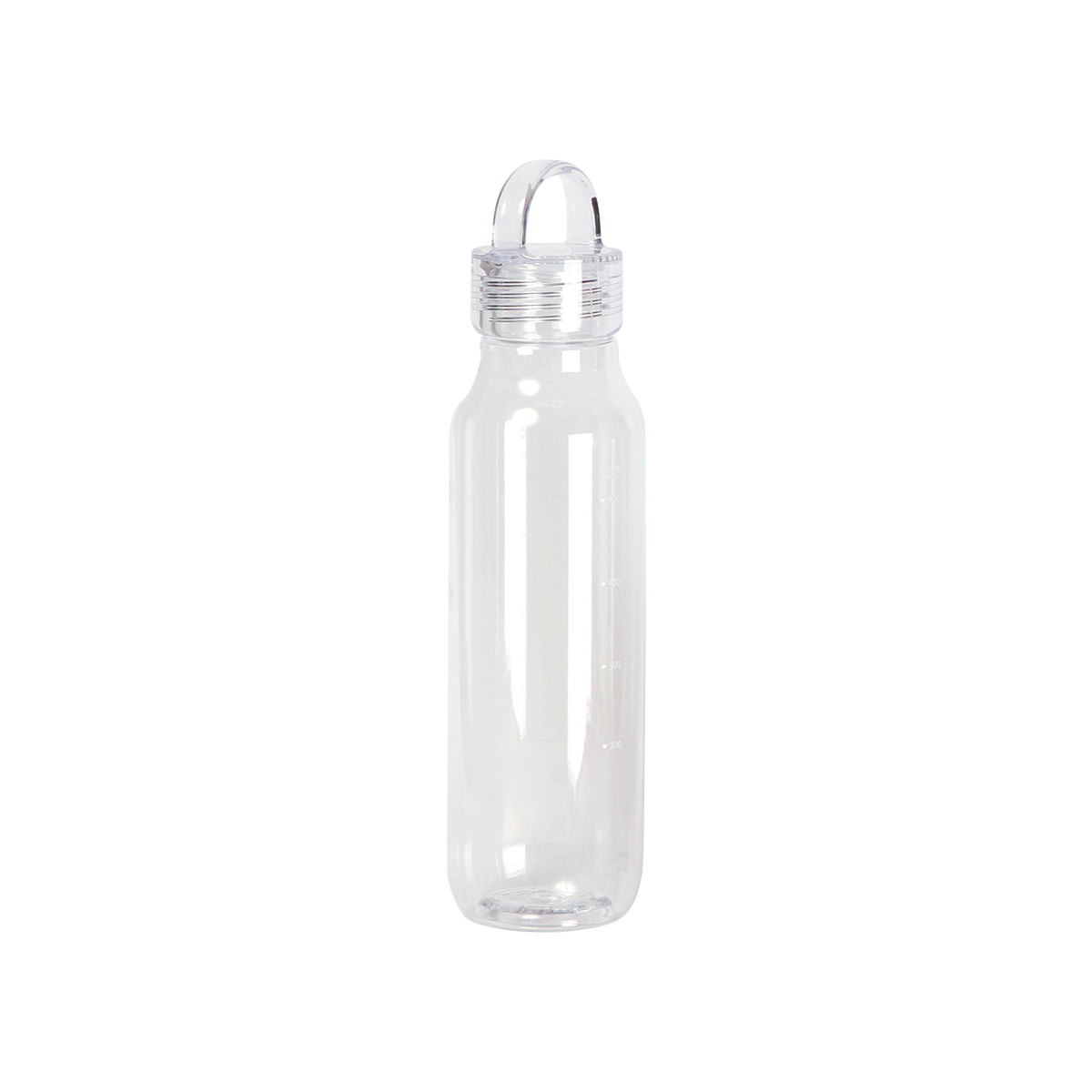 Este bote de una sola pared está fabricado en Tritan, con una estructura ligera y resistente que mantiene su forma. Su cuerpo presenta un diseño cilíndrico de superficies lisas y bordes definidos. La tapa está fabricada en el mismo material, diseñada para encajar de forma precisa y mantener un cierre firme, la tapa tiene una agarradera en la parte superior.